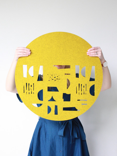 The new collection is a change in direction to a looser, more fluid style of pattern which is the result of the techniques that I’ve used to originate these designs. Each pattern retains its hand drawn authenticity. Hand-painted and printed patterns have been translated into intricate cutting artwork and carved from felted wool fibres to create unique textile surfaces for interiors. New products include rugs, wall hangings, textile artworks and screens as well as fabrics available by the metre.